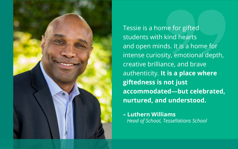 Luthern Williams serves as Head of School at Tessellations, bringing thoughtful leadership and a steady hand to a time of important growth. Since joining Tessellations in November 2024, he has helped the school clarify its strategic direction, strengthen alignment across programs, and deepen community trust. His work has included leading the redesign of Middle and High School into a unified Secondary School, spearheading the refinement of literacy instruction for gifted learners, and championing a renewed commitment to mission-driven, strategic growth. A Harvard-trained educator with a long-standing dedication to developing schools that cultivate the full potential of young people, Luthern leads with both strategic clarity and deep care—uplifting a culture where gifted learners are empowered to thrive as their full, authentic selves.